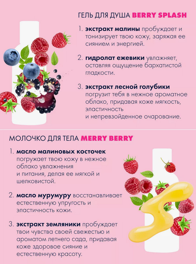 Organic Kitchen Набор подарочный для тела «Berry Punch»В данный момент этот товар отсутствует в продаже. Возможно, у нас найдется аналогичный или похожий товар здесь. Окунись в ароматный водоворот ягодного настроения и позволь нежности и гладкости окутать тебя полностью! Сладкое предсказание: возможно, любители ягод будут не в силах устоять перед твоей привлекательностью. Готовься к потоку восхищенных взглядов и сладких признаний! |