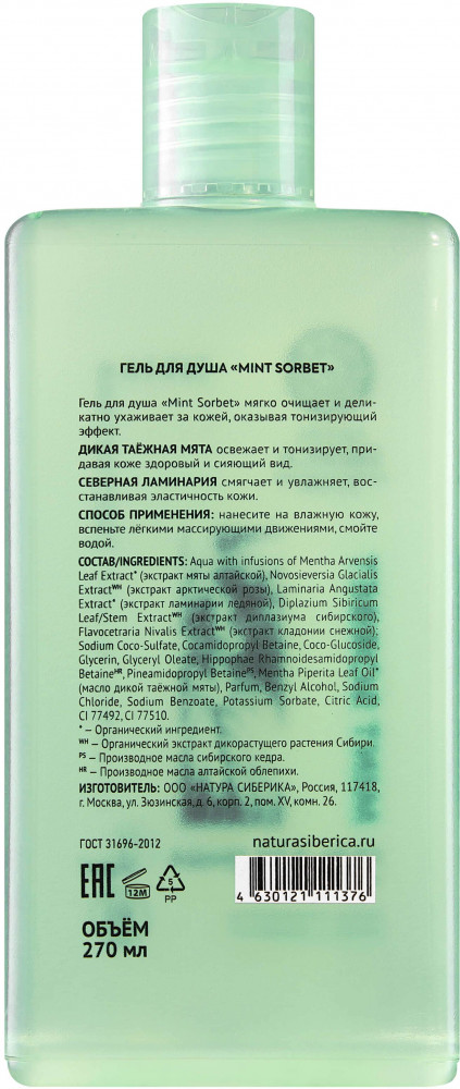 Natura Siberica Гель для душа тонизирующий «Mint Sorbet»