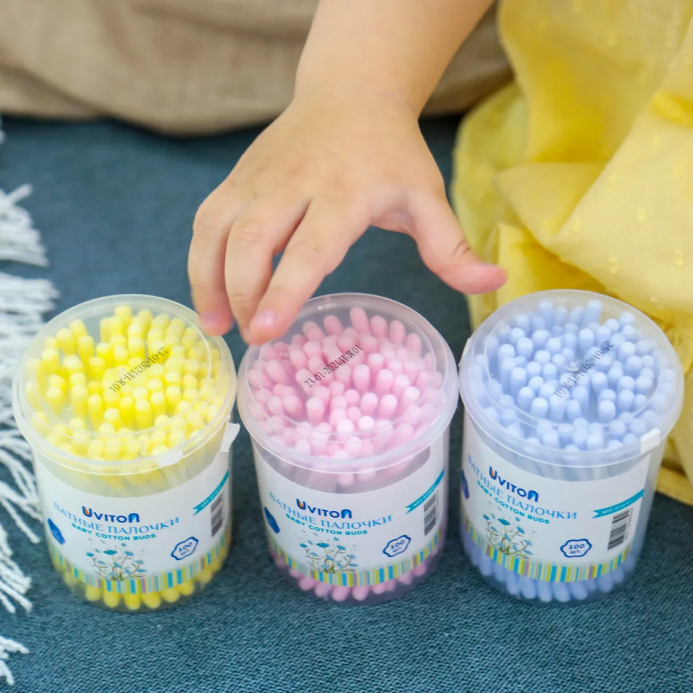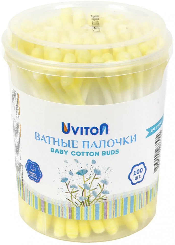Цветные ватные палочки 100 штук в упаковке в удобной круглой упаковке от Uviton. Предназначены для детской и взрослой гигиены. Помогут Вам в заботе о малыше с первых дней жизни. Деликатно и эффективно очищает загрязнения, оставляя кожу чистой. Незаменимый аксессуар детской косметички для современных мам, который помогает как наносить кремы и мази, так и проводить гигиенические процедуры.