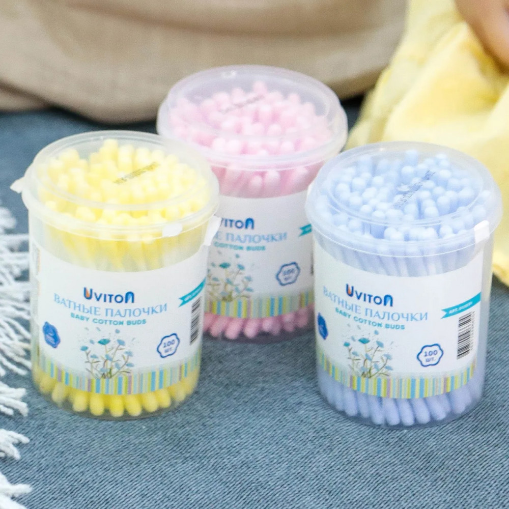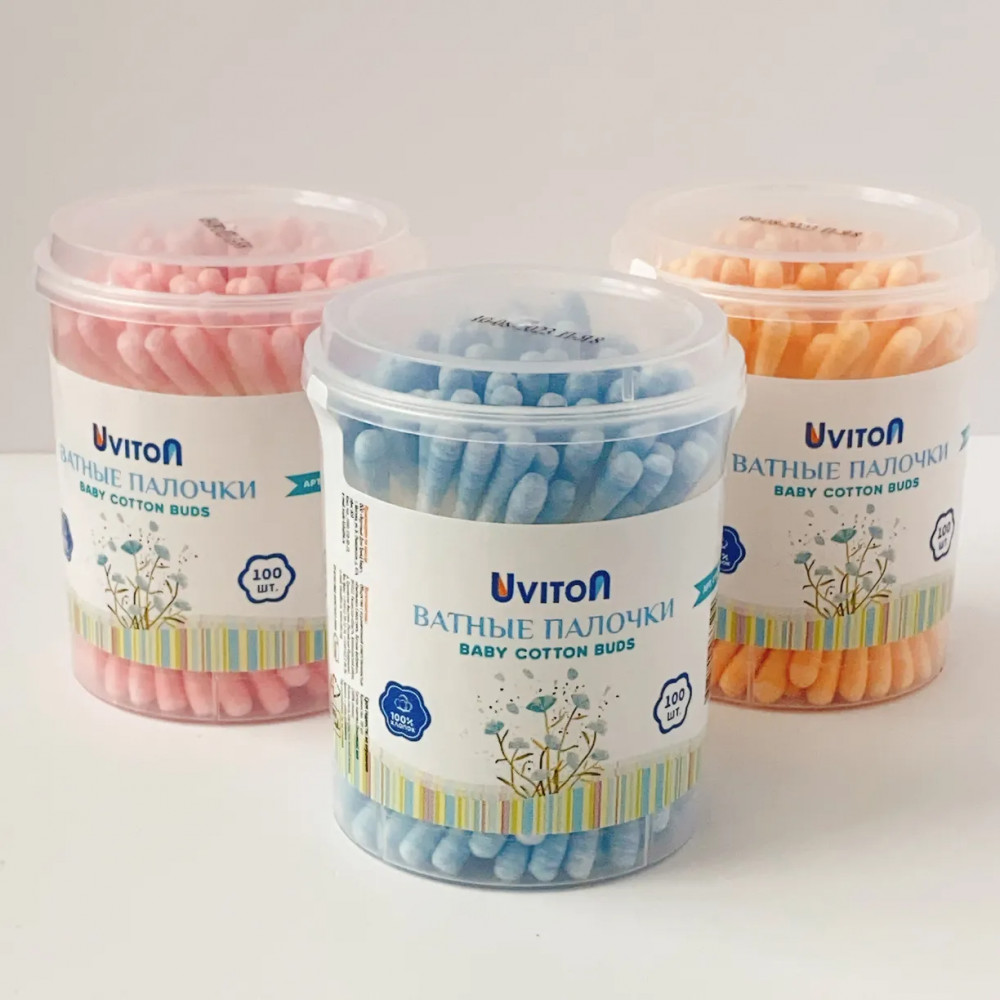 Цветные ватные палочки 100 штук в упаковке в удобной круглой упаковке от Uviton. Предназначены для детской и взрослой гигиены. Помогут Вам в заботе о малыше с первых дней жизни. Деликатно и эффективно очищает загрязнения, оставляя кожу чистой. Незаменимый аксессуар детской косметички для современных мам, который помогает как наносить кремы и мази, так и проводить гигиенические процедуры.