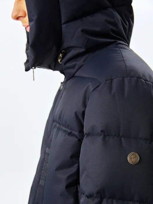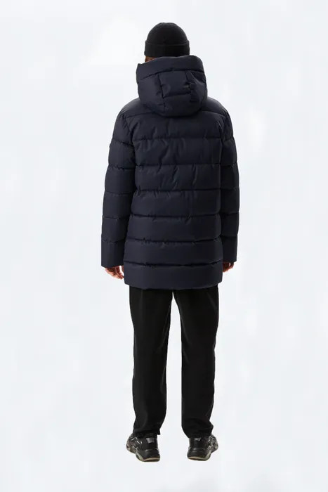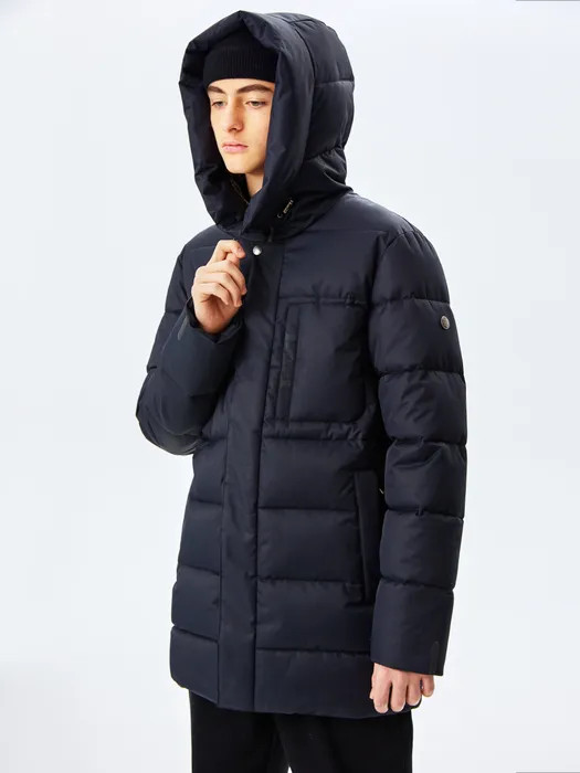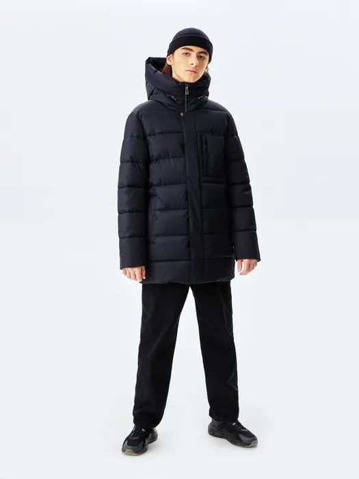 Теплый пуховик на зиму для подростка прямого силуэта из мембраны 3К/3К утеплен искусственным лебяжьим пухом 250 г/м2 и файберпластом 100 г/м2. Подкладка: полочки и спинка из ткани рефлектив, рукава из подкладочной ткани. Такая модная курточка отлично подойдет для прогулок на улице, активных игр на свежем воздухе, путешествий, туризма, лыж и других видов спорта и отдыха на природе, так же ее можно одеть в школу. Светоотражающие элементы служат пассивной защитой в темное время суток. Капюшон втачной, объём регулируется внутренней кулисой с эластичным шнуром. В верхней части правой полочки расположен карман на молнии. Застежка центральная на разъёмную молнию, закрытая втачной планкой. Низ куртки прямой, мягкой формы без отделки, объем регулируется с помощью кулисы со стороны подкладки.