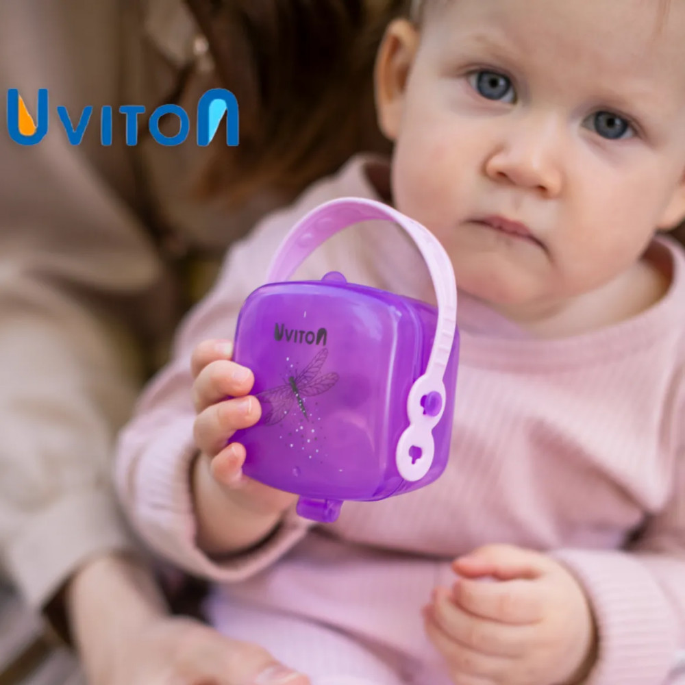 Футляр для пустышки Uviton предназначен для хранения и содержания в чистоте любимой соски или пустышки. Он защищает пустышку от загрязнения, удобно и легко крепится. Гибкая ручка позволяет закрепить контейнер на коляске, автокресле или прогулочной сумке. Необходимую длину можно регулировать с помощью дырочек на ручке (2 размера). Изготовлен из безопасных материалов, не содержит бисфенола А.