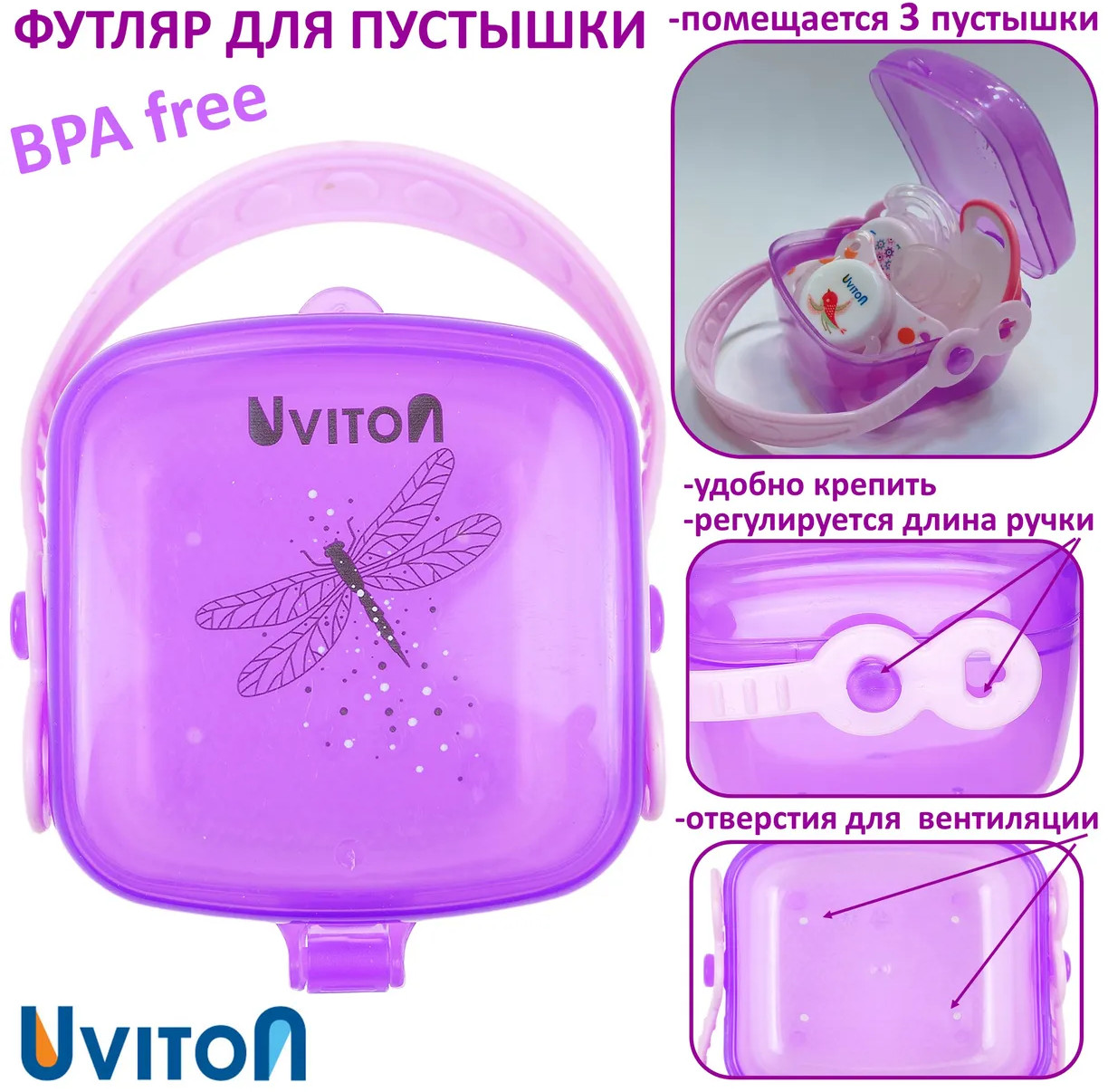 • обеспечивает безопасное и гигиеничное хранение пустышки в сумке, рюкзаке или кармане;