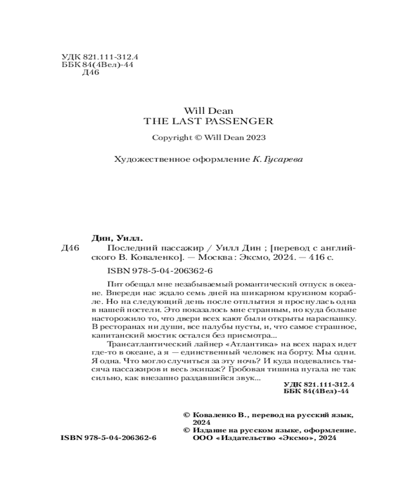 💳 Оплатить за товар можно при получении 🇰🇿 Есть бесплатная доставка по Казахстану от 1 дня 🎁 Копите бонусы с каждой покупки Серия: Tok. Триллеры от мастера жанра. Уилл Дин Роскошный круизный лайнер, брошенный без экипажа, идет полным ходом через Атлантический океан. И вы — единственный пассажир на борту. |