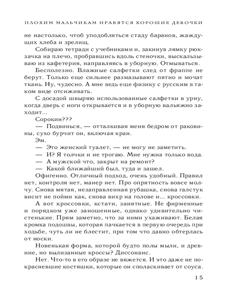 💳 Оплатить за товар можно при получении 🇰🇿 Есть бесплатная доставка по Казахстану от 1 дня 🎁 Копите бонусы с каждой покупки Серия: Пижамная вечеринка «Плохим мальчикам нравятся хорошие девочки» — это роман о первой любви, которая одновременно исцеляет и наносит раны, оставляя на сердце шрамы. Она неукротима, горяча и несдержанна. Такую любовь нельзя назвать идеальной, но именно она запомнится на всю жизнь. |