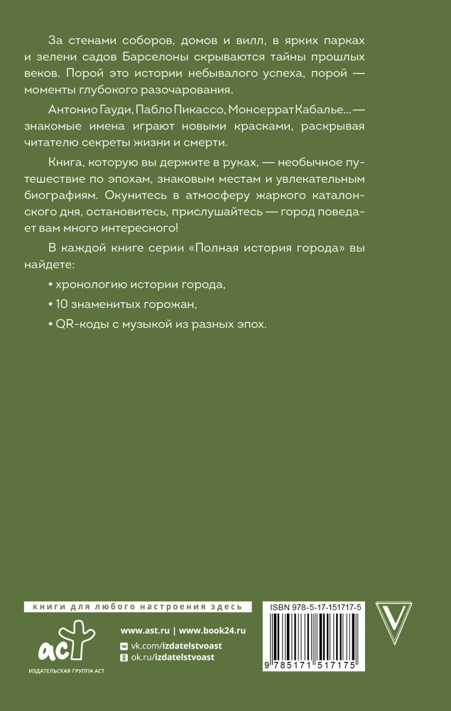 💳 Оплатить за товар можно при получении 🇰🇿 Есть бесплатная доставка по Казахстану от 1 дня 🎁 Копите бонусы с каждой покупки Серия: История города на пальцах За стенами соборов, домов и вилл, в ярких парках и зелени садов Барселоны скрываются тайны прошлых веков. Порой это истории небывалого успеха, порой — моменты глубокого разочарования. |