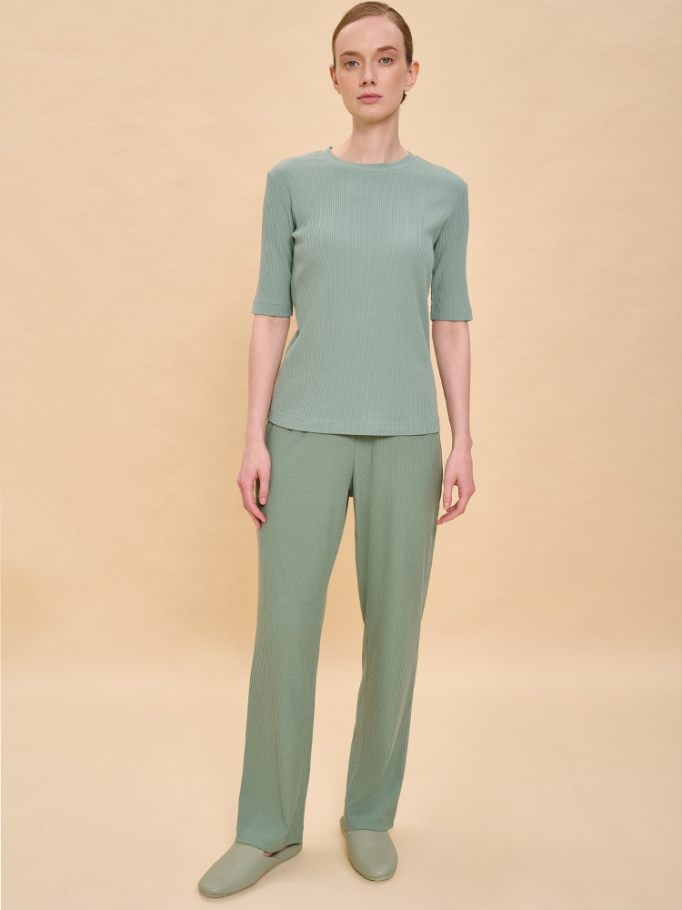 Хорошие лёгкие брючки из ткани в рубчик "лапша"