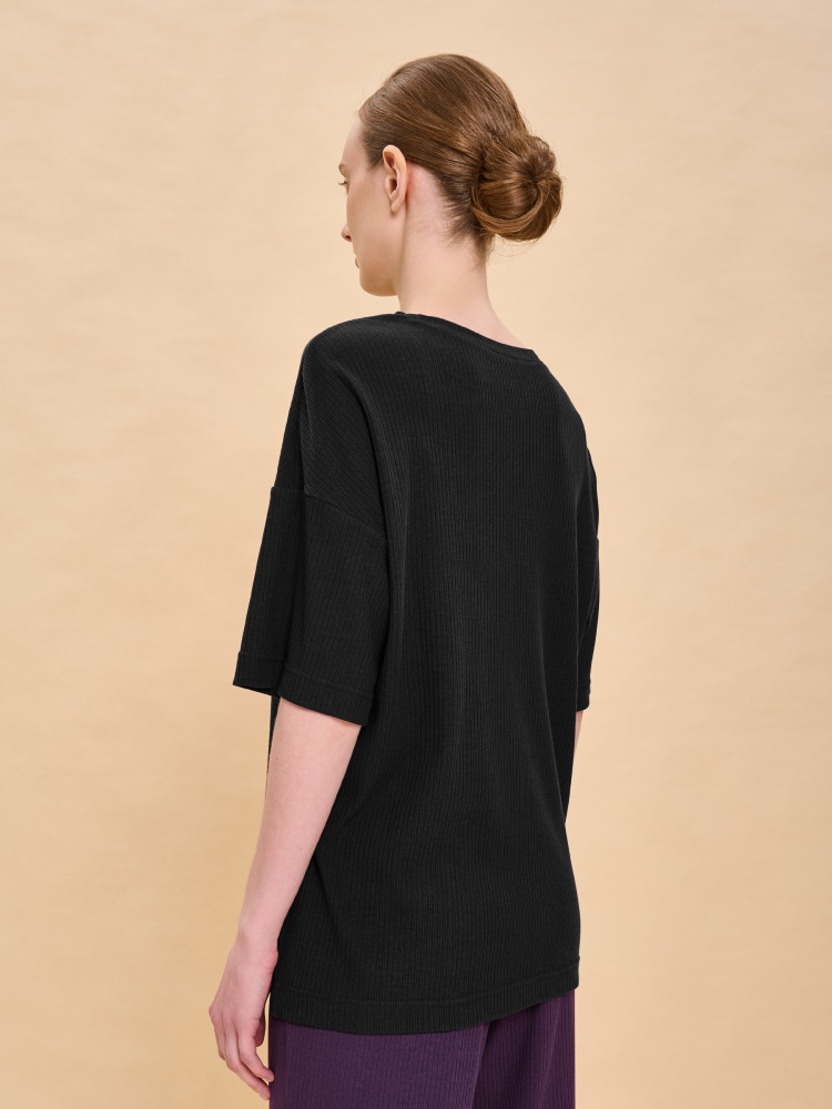 Футболка однотонная женская. Комфортная мягкая футболка силуэта оверсайз со спущенным плечом подарит вам комфорт и станет отличным дополнением повседневного гардероба. Модель выполнена из эластичной рибаны (ткань в рубчик), вырез горловины также обработан рибаной — она прекрасно держит форму, не растягивается, при этом футболку удобно надевать и снимать. Базовая футболка с рукавом длиной до локтя — актуальный тренд сезона. Изделие неприхотливо в уходе. Модель лаконичного дизайна, без принта. В составе ткани преобладает высококачественный хлопок — майка мягкая, дышащая, приятная на ощупь. Полиэстер помогает сохранить первоначальную форму и цвет в течение длительного времени. Однотонная футболка выполнена в актуальных и при этом универсальных цветах, её легко комбинировать с различными брюками, шортами, юбками. Футболка женская без принта — базовый элемент гардероба, пригодится в любой ситуации. Её можно носить в качестве домашней одежды и не только — можно создать множество различных актуальных образов. Однотонная футболка женская подходит для любого времени года, её можно носить как летом, так и в холодное время года в качестве среднего слоя одежды, а также на спорт.