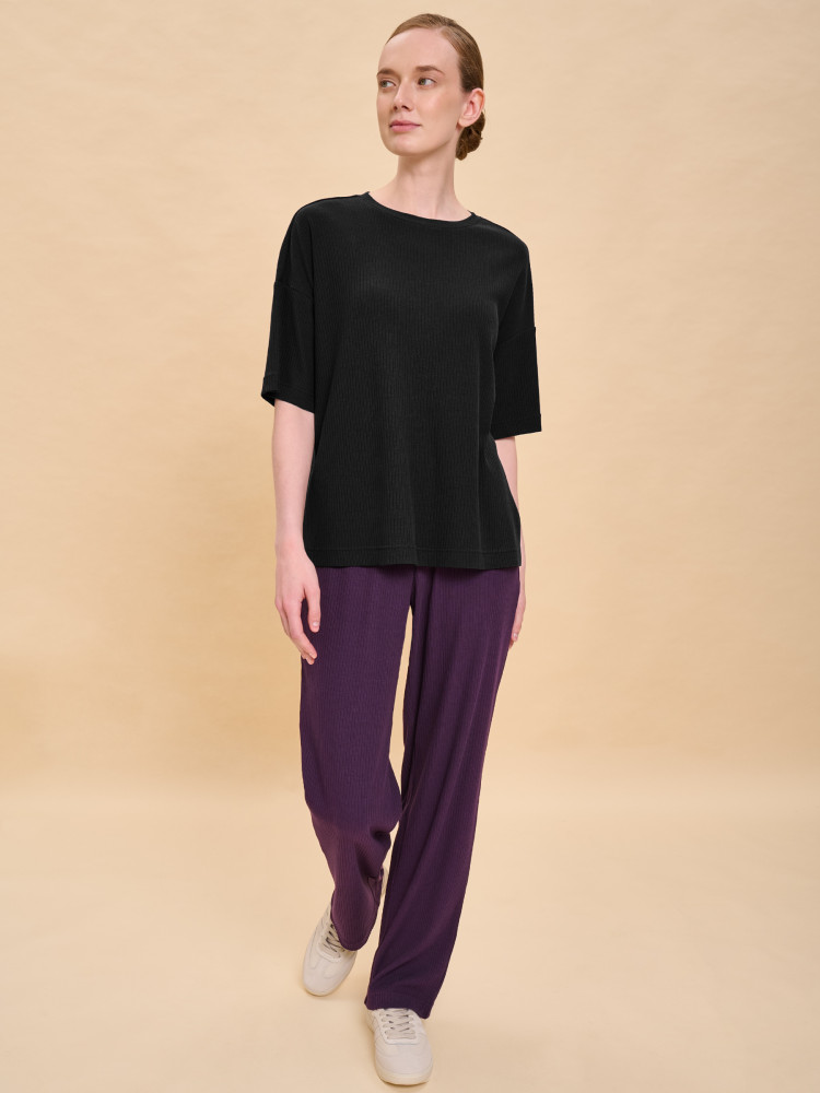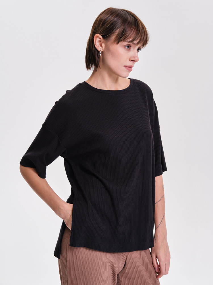 Футболка однотонная женская. Комфортная мягкая футболка силуэта оверсайз со спущенным плечом подарит вам комфорт и станет отличным дополнением повседневного гардероба. Модель выполнена из эластичной рибаны (ткань в рубчик), вырез горловины также обработан рибаной — она прекрасно держит форму, не растягивается, при этом футболку удобно надевать и снимать. Базовая футболка с рукавом длиной до локтя — актуальный тренд сезона. Изделие неприхотливо в уходе. Модель лаконичного дизайна, без принта. В составе ткани преобладает высококачественный хлопок — майка мягкая, дышащая, приятная на ощупь. Полиэстер помогает сохранить первоначальную форму и цвет в течение длительного времени. Однотонная футболка выполнена в актуальных и при этом универсальных цветах, её легко комбинировать с различными брюками, шортами, юбками. Футболка женская без принта — базовый элемент гардероба, пригодится в любой ситуации. Её можно носить в качестве домашней одежды и не только — можно создать множество различных актуальных образов. Однотонная футболка женская подходит для любого времени года, её можно носить как летом, так и в холодное время года в качестве среднего слоя одежды, а также на спорт.
