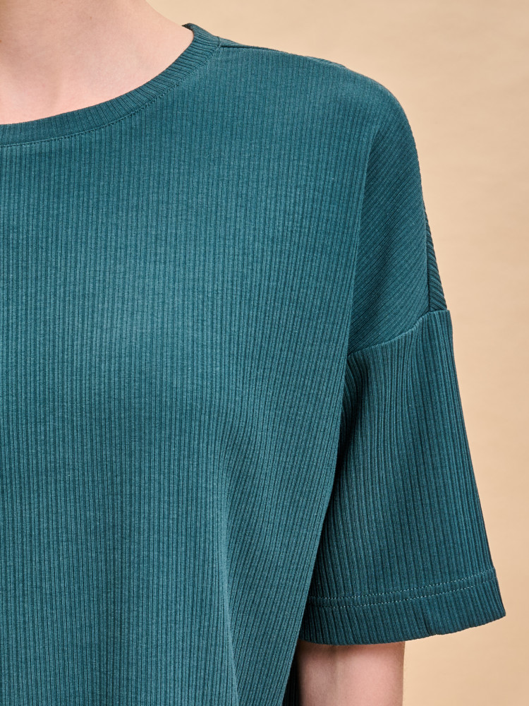 Футболка однотонная женская. Комфортная мягкая футболка силуэта оверсайз со спущенным плечом подарит вам комфорт и станет отличным дополнением повседневного гардероба. Модель выполнена из эластичной рибаны (ткань в рубчик), вырез горловины также обработан рибаной — она прекрасно держит форму, не растягивается, при этом футболку удобно надевать и снимать. Базовая футболка с рукавом длиной до локтя — актуальный тренд сезона. Изделие неприхотливо в уходе. Модель лаконичного дизайна, без принта. В составе ткани преобладает высококачественный хлопок — майка мягкая, дышащая, приятная на ощупь. Полиэстер помогает сохранить первоначальную форму и цвет в течение длительного времени. Однотонная футболка выполнена в актуальных и при этом универсальных цветах, её легко комбинировать с различными брюками, шортами, юбками. Футболка женская без принта — базовый элемент гардероба, пригодится в любой ситуации. Её можно носить в качестве домашней одежды и не только — можно создать множество различных актуальных образов. Однотонная футболка женская подходит для любого времени года, её можно носить как летом, так и в холодное время года в качестве среднего слоя одежды, а также на спорт.