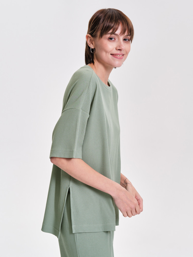 Футболка однотонная женская. Комфортная мягкая футболка силуэта оверсайз со спущенным плечом подарит вам комфорт и станет отличным дополнением повседневного гардероба. Модель выполнена из эластичной рибаны (ткань в рубчик), вырез горловины также обработан рибаной — она прекрасно держит форму, не растягивается, при этом футболку удобно надевать и снимать. Базовая футболка с рукавом длиной до локтя — актуальный тренд сезона. Изделие неприхотливо в уходе. Модель лаконичного дизайна, без принта. В составе ткани преобладает высококачественный хлопок — майка мягкая, дышащая, приятная на ощупь. Полиэстер помогает сохранить первоначальную форму и цвет в течение длительного времени. Однотонная футболка выполнена в актуальных и при этом универсальных цветах, её легко комбинировать с различными брюками, шортами, юбками. Футболка женская без принта — базовый элемент гардероба, пригодится в любой ситуации. Её можно носить в качестве домашней одежды и не только — можно создать множество различных актуальных образов. Однотонная футболка женская подходит для любого времени года, её можно носить как летом, так и в холодное время года в качестве среднего слоя одежды, а также на спорт.