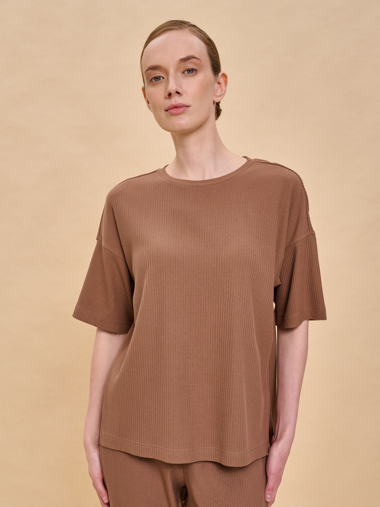Футболка однотонная женская. Комфортная мягкая футболка силуэта оверсайз со спущенным плечом подарит вам комфорт и станет отличным дополнением повседневного гардероба. Модель выполнена из эластичной рибаны (ткань в рубчик), вырез горловины также обработан рибаной — она прекрасно держит форму, не растягивается, при этом футболку удобно надевать и снимать. Базовая футболка с рукавом длиной до локтя — актуальный тренд сезона. Изделие неприхотливо в уходе. Модель лаконичного дизайна, без принта. В составе ткани преобладает высококачественный хлопок — майка мягкая, дышащая, приятная на ощупь. Полиэстер помогает сохранить первоначальную форму и цвет в течение длительного времени. Однотонная футболка выполнена в актуальных и при этом универсальных цветах, её легко комбинировать с различными брюками, шортами, юбками. Футболка женская без принта — базовый элемент гардероба, пригодится в любой ситуации. Её можно носить в качестве домашней одежды и не только — можно создать множество различных актуальных образов. Однотонная футболка женская подходит для любого времени года, её можно носить как летом, так и в холодное время года в качестве среднего слоя одежды, а также на спорт.