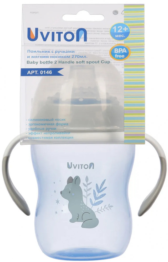 Uviton Поильник-непроливайка с ручками и мягким носиком «Волк»