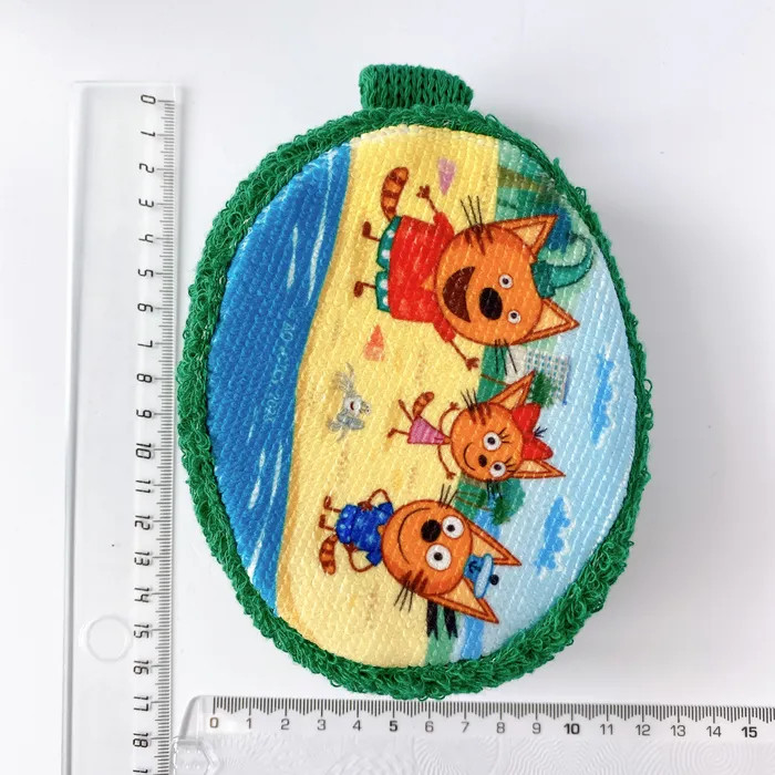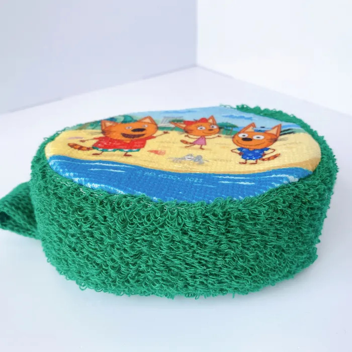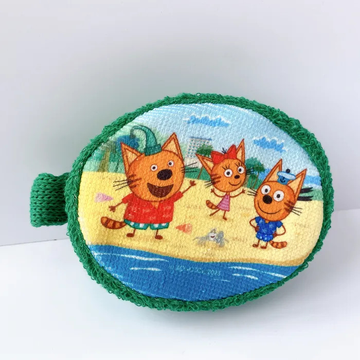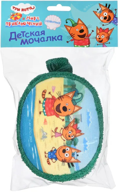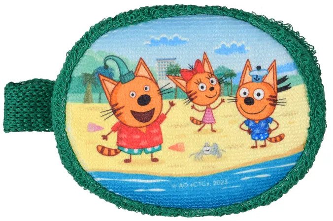 Махровая детская мочалка «На море» из натурального хлопка с изображением любимого героя мультсериала «Три кота». Удобный размер и форма, красочный принт.