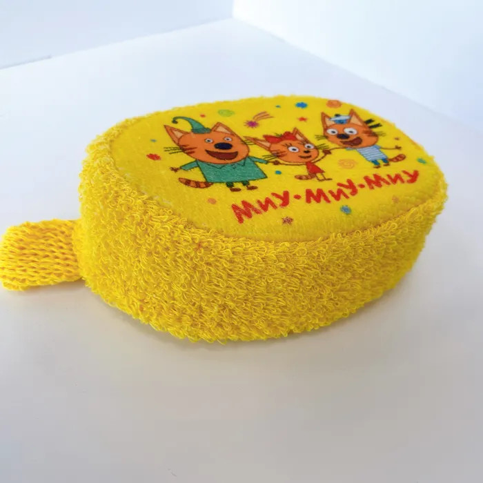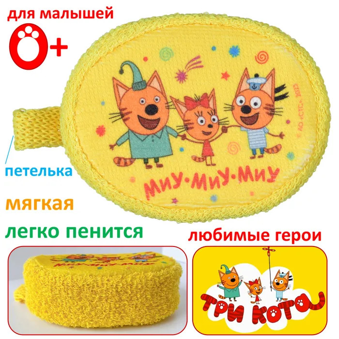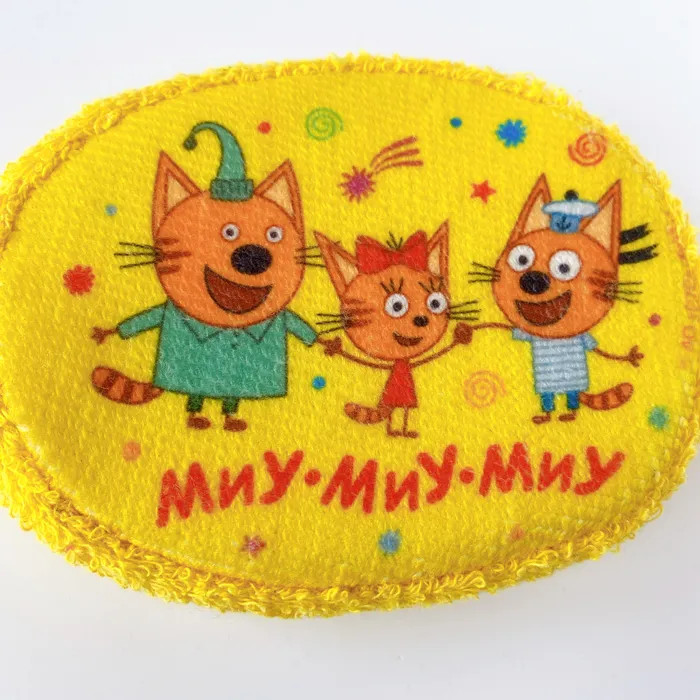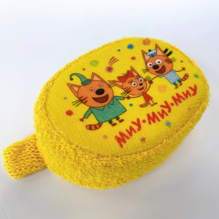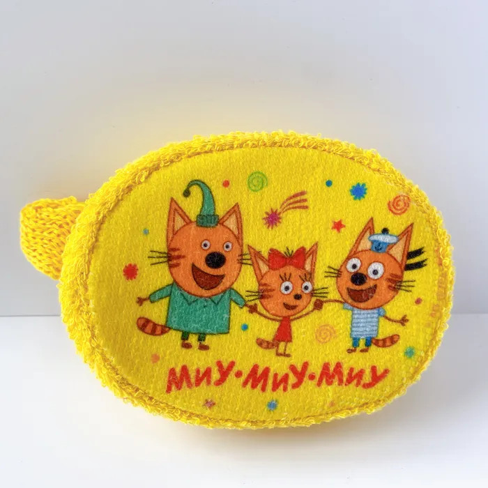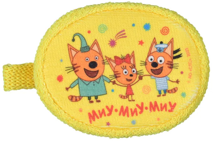 Махровая детская мочалка «Пляж» из натурального хлопка с изображением любимого героя мультсериала «Три кота». Удобный размер и форма, красочный принт.