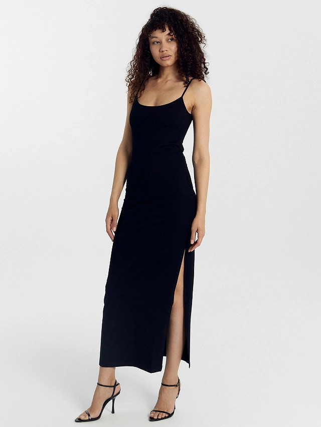Даже не ожидала. что так понравится. Ткань красиво облегает фигуру.Разрез заканчивается там , где надо. При росте 158см подол платья до пола.