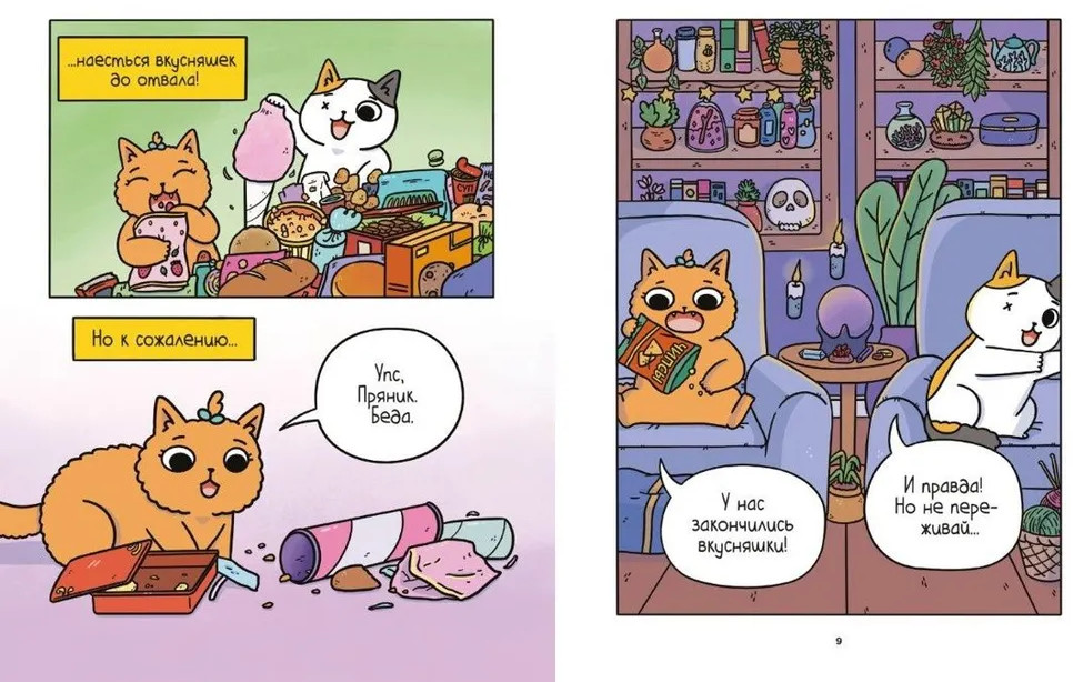 💳 Оплатить за товар можно при получении 🇰🇿 Есть бесплатная доставка по Казахстану от 1 дня 🎁 Копите бонусы с каждой покупки Серия: Графические романы. Манга В большом-большом городе, в маленькой-маленькой квартире живут очаровательные котики, умеющие колдовать, — Пряник и Имбирка. Однажды они остаются дома одни, и с ними приключается беда — заканчиваются все-все вкусняшки. Недолго думая, котики открывают волшебный портал и отправляются на поиски ингредиентов для зелья хрум-вкусняшка, с которым нескочаемый запас лакомств им обеспечен! |