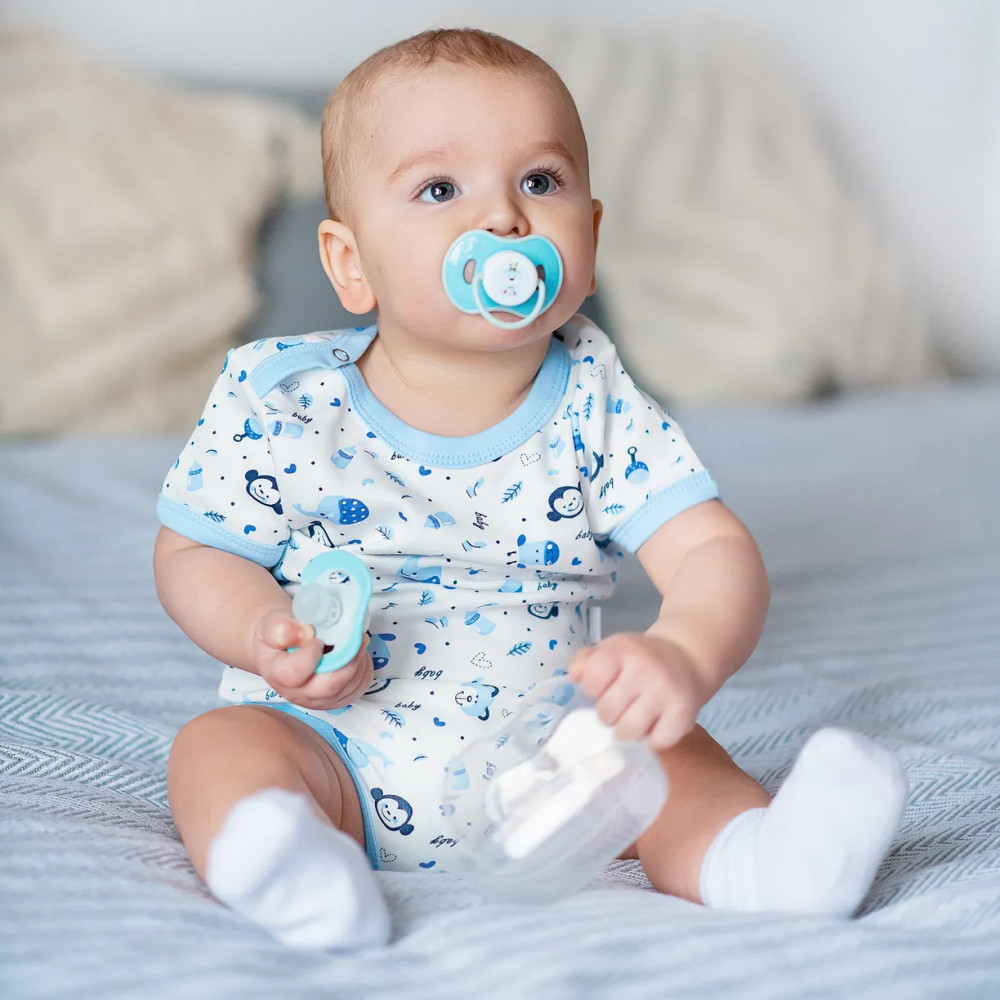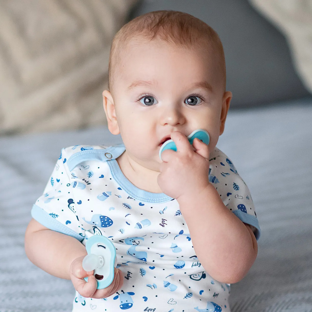 Uviton Набор пустышек симметричных ортодонтических с футляром «Мишка»В данный момент этот товар отсутствует в продаже. Возможно, у нас найдется аналогичный или похожий товар здесь. Набор из 2 симметричных силиконовых пустышек Uviton в футляре. Пустышки изготовлены из безопасных, нетоксичных материалов, высококачественного силикона, отличающийся особой мягкостью, эластичностью, прочностью. Силикон имеет нейтральный вкус и запах, не вступает в химическую реакцию со слюной, хорошо стерилизуется, не теряет форму и не впитывает запахи. Пустышка имеет симметричную форму, которая наиболее физиологична для детей в возрасте до года. Благодаря специальным отверстиям на нагубнике пустышка отлично пропускает воздух, что предотвращает риск возникновения покраснений и раздражения на нежной коже малыша. В комплекте идет контейнер для хранения (из пластика), в котором пустышки удобно хранить или брать с собой в дорогу. Пустышки удовлетворяет естественный сосательный рефлекс и тренируют мышцы, играющие важную роль в развитии речевых навыков. Пустышка предназначена для детей от 0 до 6 месяцев. Кольцо встроено таким образом, что оно совсем не давит и не мешает малышу. |