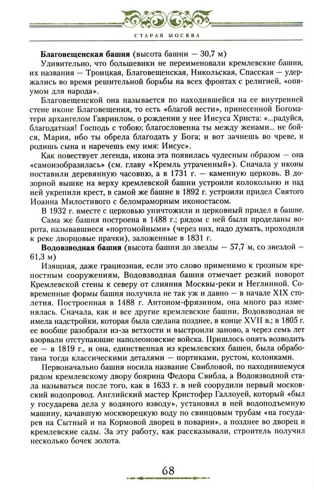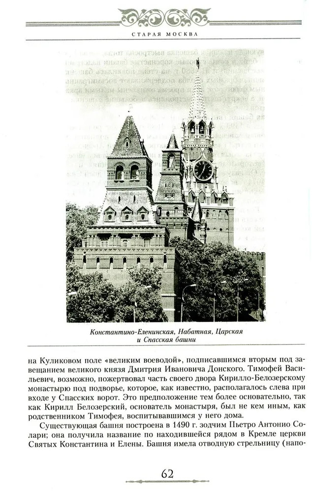 Старая Москва. Путешествие от Кремля до Бульварного кольца. История центра столицы в памятниках, площадях и переулках. Эта книга посвящена рассказу о центре Москвы, многочисленных памятниках Кремля, Красной площади, исторического района Китай-город, площадях и улицах вокруг центральной части города и об одном из самых любопытных и красивых мест центра — Острове. Каждое строение города, где бы оно ни находилось, — каменная скрижаль с высеченной на ней историей, рассказом о событиях, людях и их поступках. Автор рассказывает об исторических корнях современной Москвы, описывает все здания (в том числе и снесенные в XX в.) и все важные события, связанные с ними. |