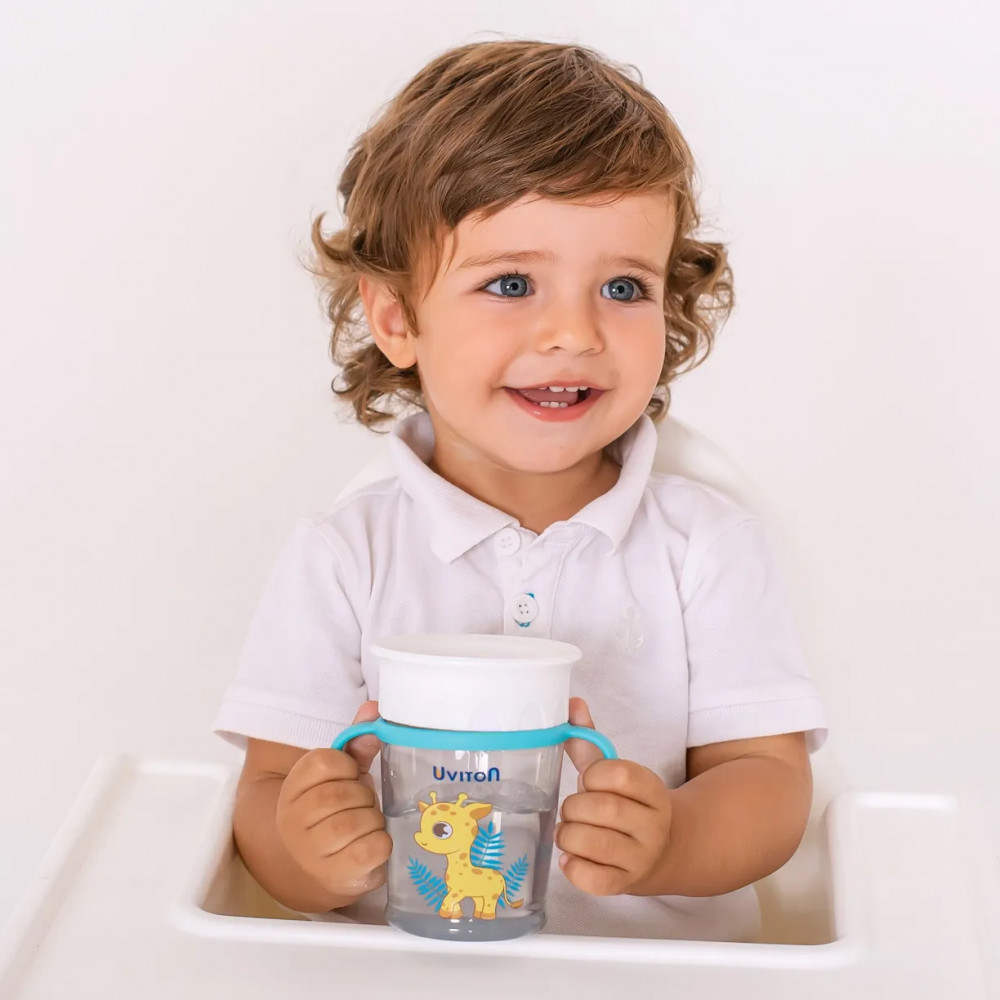 В данный момент этот товар отсутствует в продаже. Возможно, у нас найдется аналогичный или похожий товар здесь. Поильник непроливайка 360 тренировочный для детей от Uviton Чашка непроливайка позволит малышу легко и быстро привыкнуть пить с края как из обычной кружечки. Пить напиток можно по всей окружности — жидкость равномерно распределится под крышкой, под каким бы углом ребёнок не наклонил его. Удобно брать с собой в коляску, автомобиль. Этот обучающий поильник предотвращает любые проливания напитков, а также благодаря мягкому и гибкому материалу бережет зубы и десны малышей. в отличии от поильник с трубочкой ваш малыш не прогрызет накладку. Такая технология без горлышка позволяет быстрее приучить малыша к взрослой чашке.