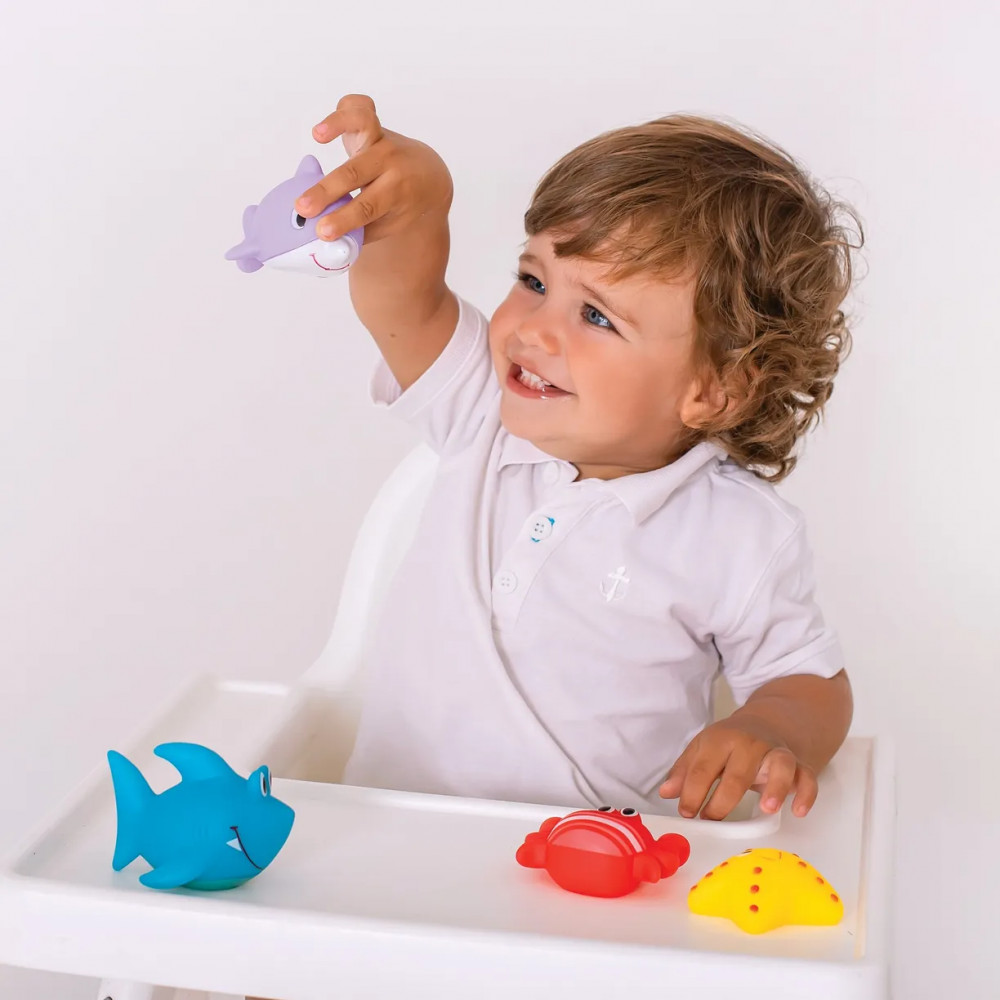 💳 Оплатить за товар можно при получении 🇰🇿 Есть бесплатная доставка по Казахстану от 1 дня 🎁 Копите бонусы с каждой покупки Игрушки для ванны «Ocean» от Uviton — это четыре разноцветных и ярких фигурки в виде: акулы, дельфина, краба и морской звездочки, которые сделают процесс купания Вашего малыша весёлым, увлекательным и обучающим! Игры в воде налаживают работу нервной системы, нейтрализуют полученные в течение дня стрессы, благотворно сказываются на всестороннем и своевременном развитии малыша. Игрушки можно использовать как брызгалки, сожмите игрушку опустите по воду, внутрь наберется вода, достаньте ее из воды нажмите и через отверстие вода будет вылетать. |