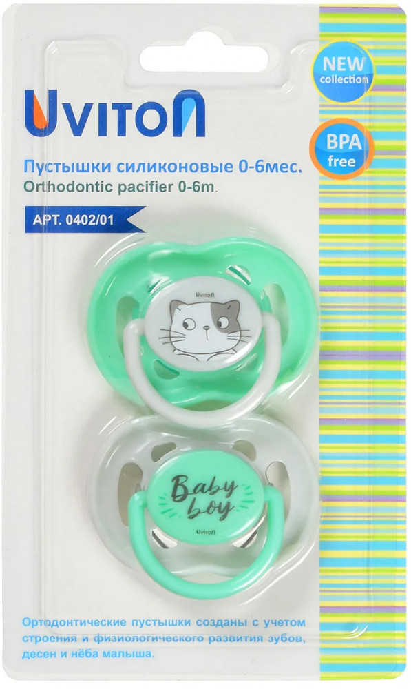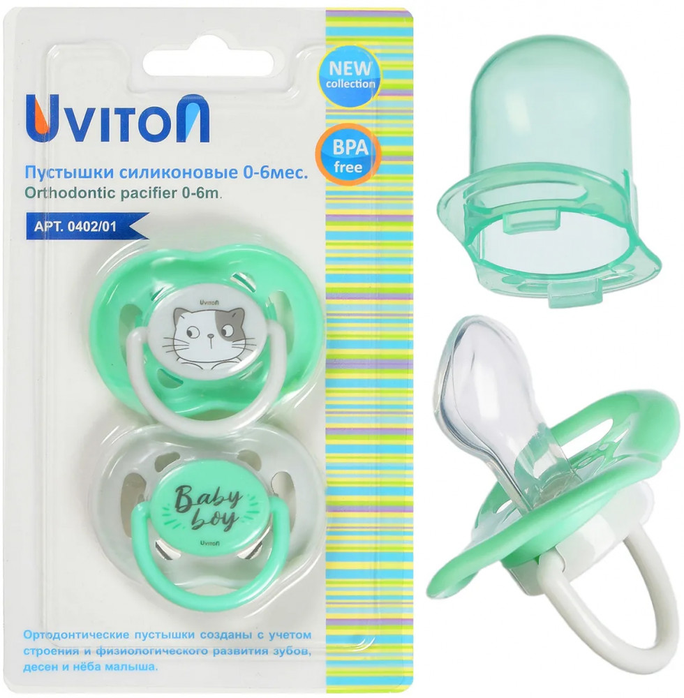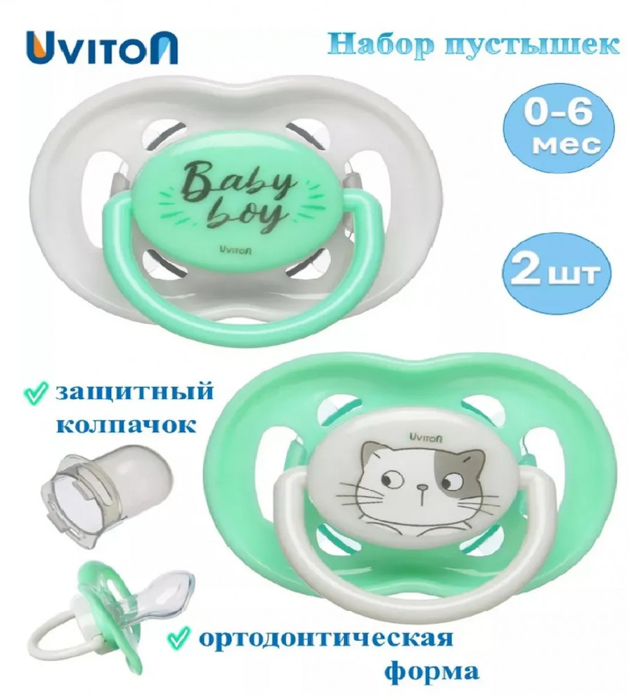 Uviton Набор пустышек ортодонтических с колпачком «Baby»+63