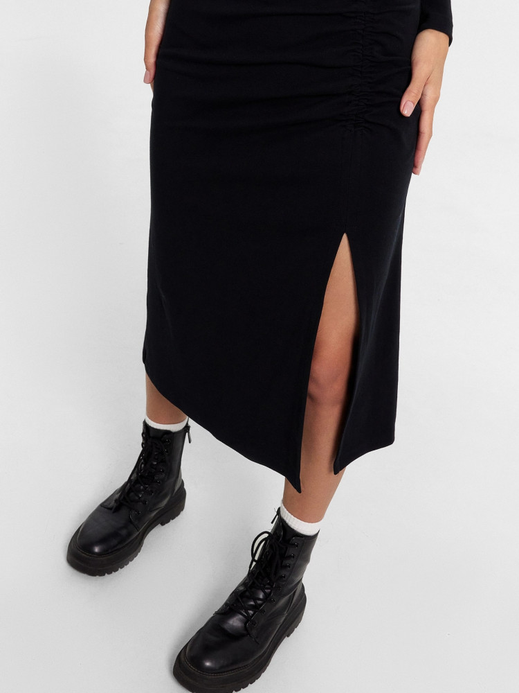 Где разрез складки из резинки, весь вид испортили, ткань трикотаж