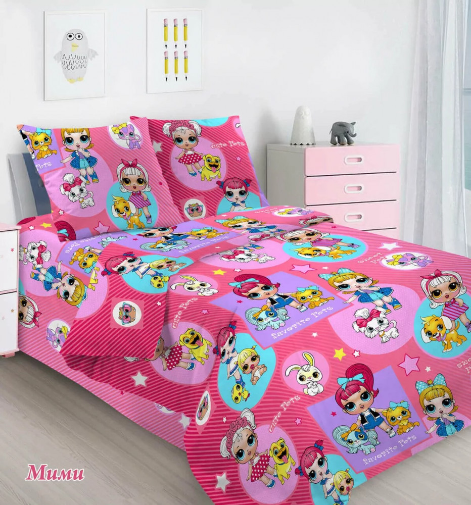 Комплект постельного белья «Мими» из плотной бязи 1,5-спальный. В составе 100% натуральный хлопок. Постельное белье включает пододеяльник, простыню и две наволочки размером 70 × 70 см, обеспечивая всё необходимое для полноценного отдыха. Бязь отличается своей природной прочностью и устойчивостью к частым стиркам, сохраняя яркость красок и форму даже после многочисленных циклов использования.