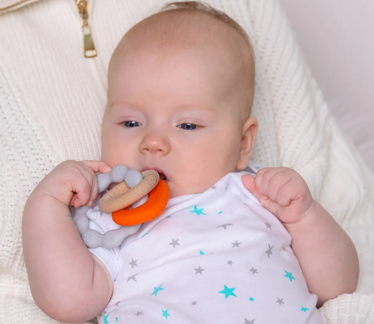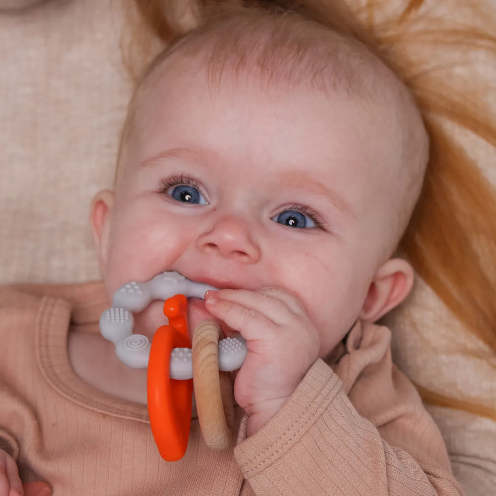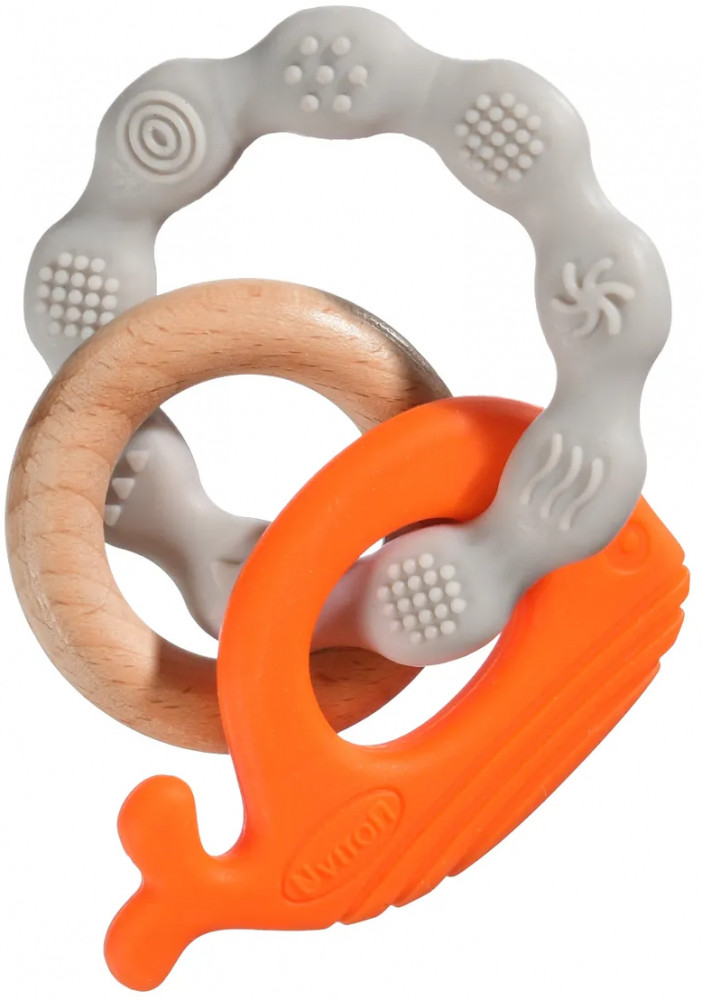 Игрушка- силиконовый прорезыватель с элементами из натурального дерева бук серии Sea от Uviton не только выполняет свою основную функцию — помогает во время прорезывания зубов, но и предлагает разнообразные сенсорные ощущения, благодаря сочетанию безопасного силикона и букового дерева. Ручка игрушки изготовлена в виде кольца с разнорельефной поверхностью, помогает в развитии мелкой моторики. Ее удобно держать крохотным ручкам малыша. Игрушка тактильно приятная на ощупь. Рельеф обеспечивает сенсорную стимуляцию, помогает при захвате, а также позволяет нанести успокаивающий гель при прорезывании зубов и распределить его по деснам.