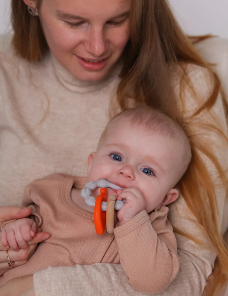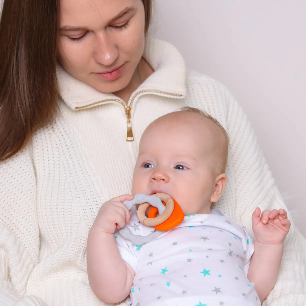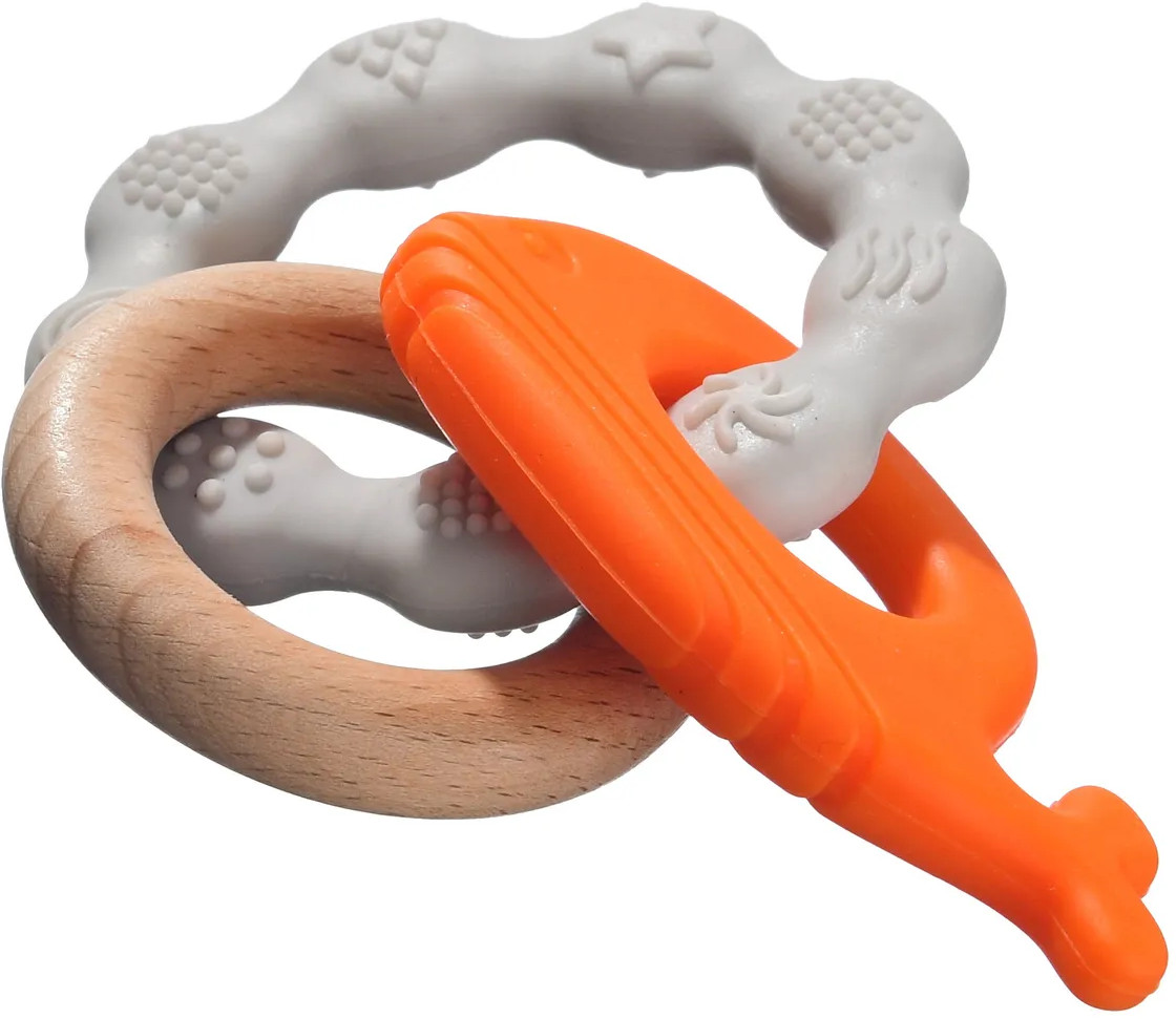 Развивающие элементы присутствуют в игрушке, в виде мягкого силиконового китенка и букового кольца. С ним так интересно играть! Такой прорезыватель-игрушка обеспечит спокойствие малышу и гармоничное развитие. Игрушка имеет конструкцию, позволяющую ребёнку грызть её детали, массируя дёсны и тем самым облегчая зуд по время прорезывания молочных зубов. Перебирая и изучая элементы игрушки, малыш будет развивать свои тактильные ощущения, двигательную и слуховую активность.