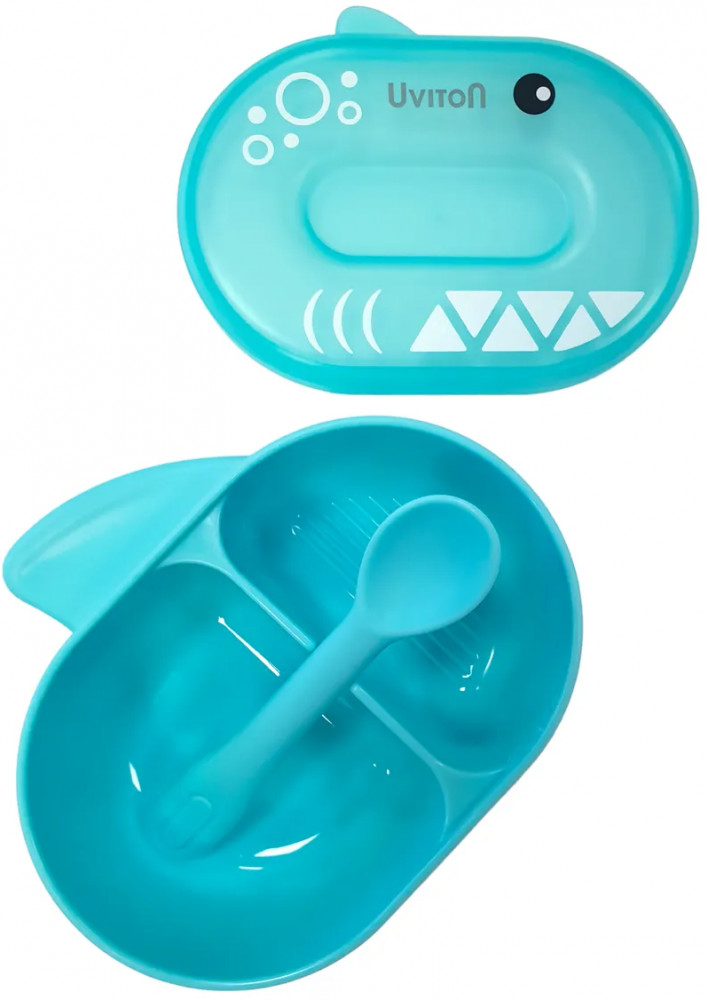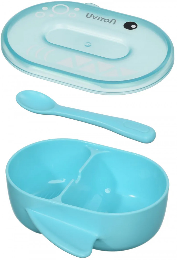 Uviton Тарелочка двухсекционная с крышкой и ложечкой