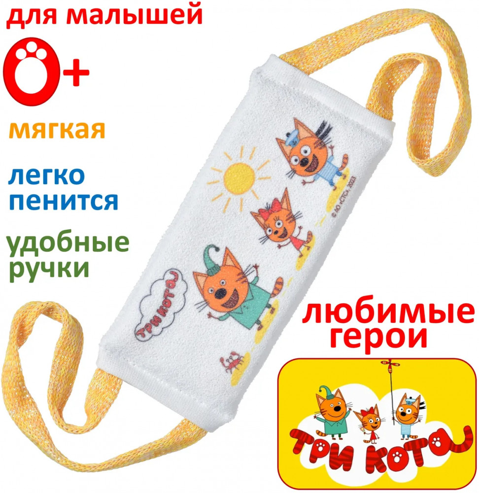 Три кота Мочалка с ручками для купания «Море привет»-20% +64