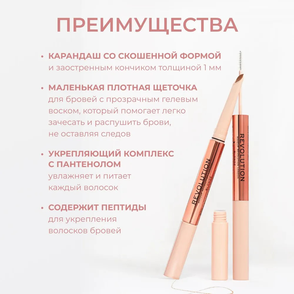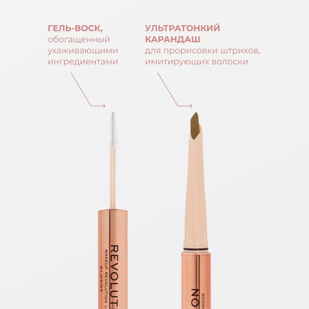 Makeup Revolution Карандаш для бровей контурный и гель для фиксации «Fluffy Brow Duo», оттенок Blond