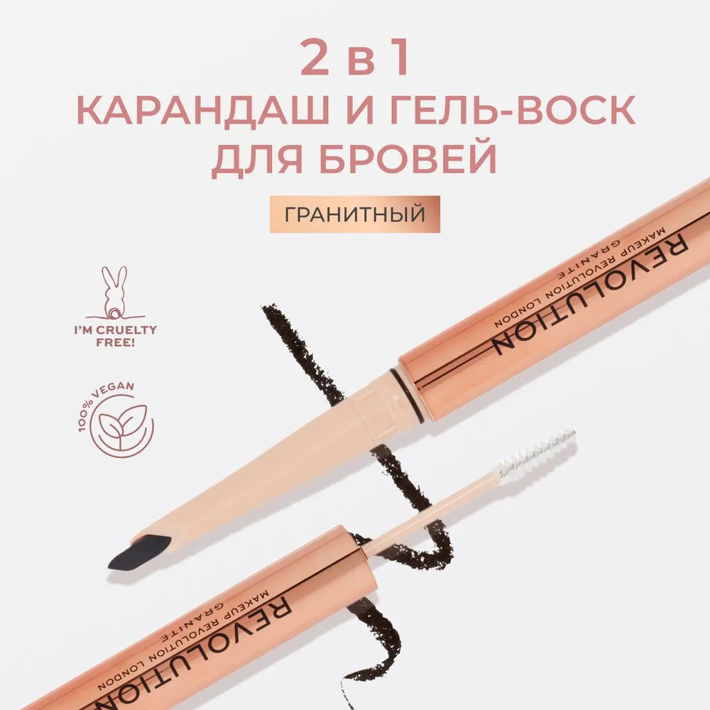 Makeup Revolution Карандаш для бровей контурный и гель для фиксации «Fluffy Brow Duo», оттенок Granite