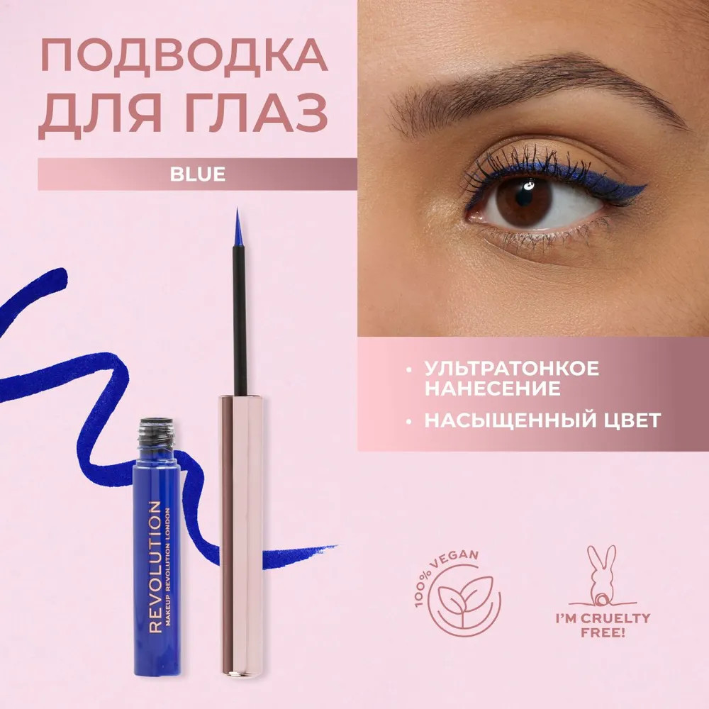 Makeup Revolution Подводка для век жидкая «Super Flick Liquid Eyeliner», оттенок Blue