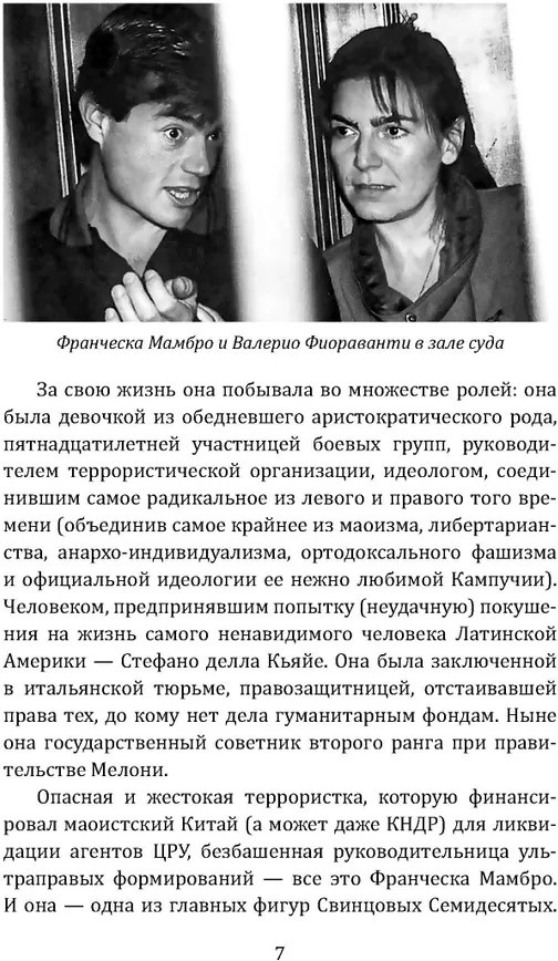 💳 Оплатить за товар можно при получении 🇰🇿 Есть бесплатная доставка по Казахстану от 1 дня 🎁 Копите бонусы с каждой покупки Серия: Против течения Семидесятые годы прошлого века вошли в историю как «свинцовые семидесятые». Это было удивительное время, когда по всей Европе взрывались бомбы, полыхали государственные учреждения и машины полиции, политиков убивали, а радикальная молодежь воевала с государством и между собой. Именно тогда в Италии восходит кровавая звезда терроризма того времени — вселяющая ужас в политиков и народ Франческа Мамбро. Её политическая деятельность выльется в десятки терактов (среди которых и самый крупный за всю историю Италии) и сотни унесенных жизней. Но путь этого человека не окончится в тюрьме. Он продолжится в правительственных кабинетах, как и путь множества других боевиков той эпохи. |