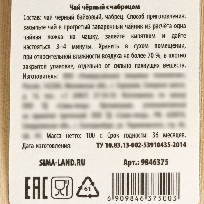 Фабрика счастья Чай чёрный с чабрецом «Уютной зимы»