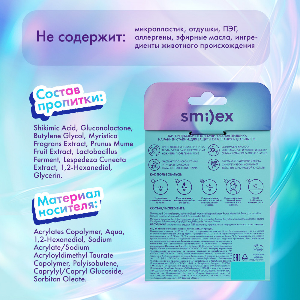 Splat Тонкие биотехнологические патчи от прыщей прозрачные «Smilex»