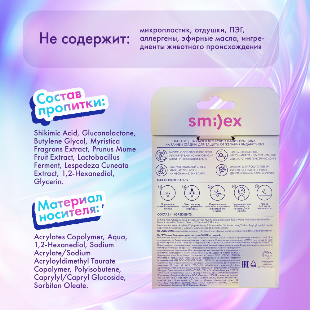 Splat Тонкие биотехнологические патчи от прыщей микс «Smilex»