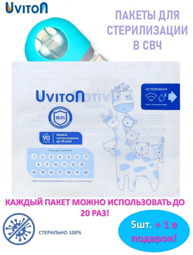 Uviton Пакеты для стерилизации бутылочек-20% +65
