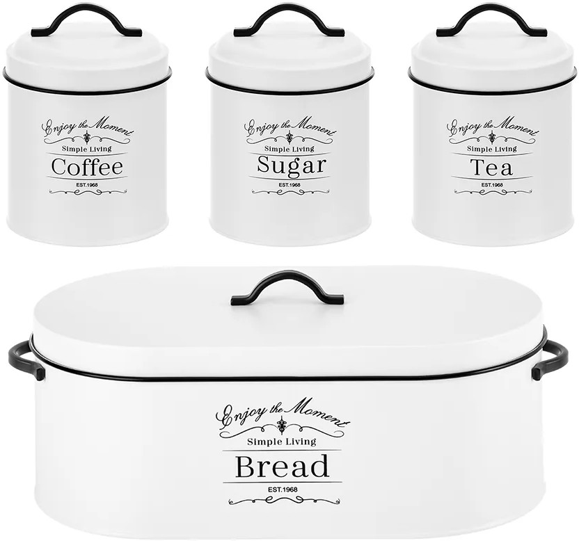 Набор баночек можно использовать для хранения различных сыпучих продуктов: сахар, кофе, соль или специи. Также в них можно насыпать крупы или орехи. Хлебница поможет сохранить хлеб и булочки вкусными и свежими. Она не впитывает запахи, держит температуру, предотвращает попадание влаги, а значит — защитит продукты от плесени. Настольная хлебница имеет стильный дизайн и надежно закрывается крышкой. Ёмкость можно приспособить не только под хлеб, но и для хранения пакетов с крекерами, печеньем, сухарями.