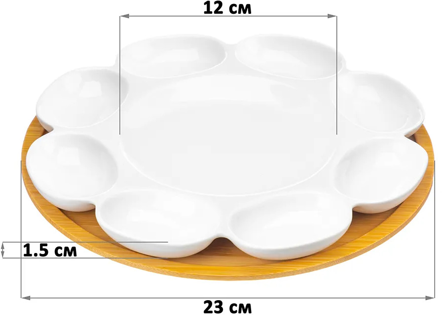 💳 Оплатить за товар можно при получении 🇰🇿 Есть бесплатная доставка по Казахстану от 1 дня 🎁 Копите бонусы с каждой покупки Серия: Айсберг Тарелка для фаршированных яиц Elan Gallery «Айсберг» размером 23×23×1,5 см выполнена из белого фарфора. Имеет съёмную бамбуковую подставку. Размер тарелки с подставкой — 23×23×1,5 см. Диаметр центральной секции тарелочки — 12 см, размер круглой подставки из бамбука — 23×23×1 см. Сервировочную тарелочку можно использовать для подачи фаршированных яиц и других закусок как в будни, так и на любой праздник. Порадуйте гостей оригинальной сервировкой на Новый год, Пасху или День рождения. |