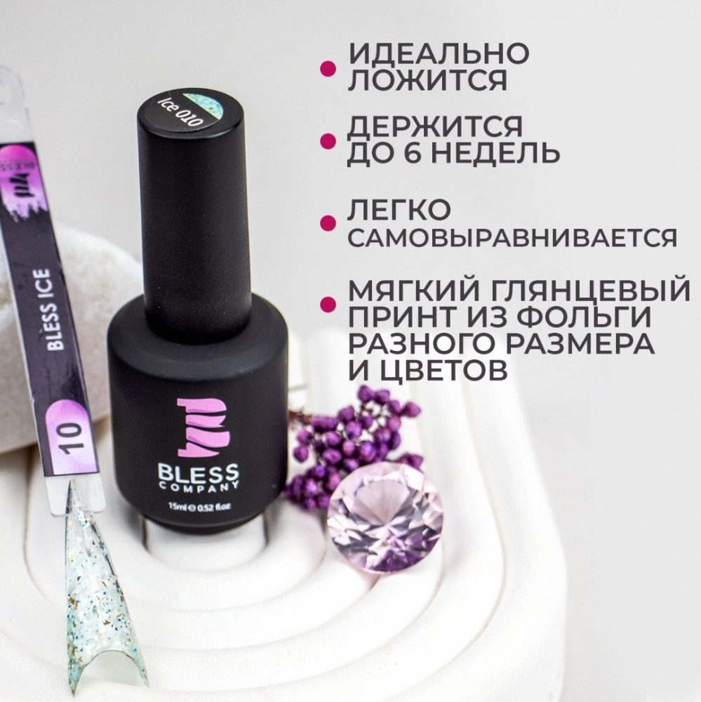 Bless company Гель-лак для ногтей глянцевый «Ice», оттенок 010 изумруд/золото