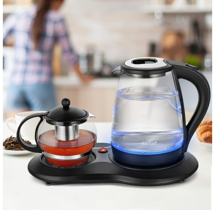 Kitfort Электрочайник КТ-6178В данный момент этот товар отсутствует в продаже. Возможно, у нас найдется аналогичный или похожий товар здесь. Корпус электрочайника Kitfort КТ-6178 выполнен из термостойкого прозрачного стекла. Присутствует яркая подсветка. Прибор обладает объемом 2 л. Мощность 1500 Вт обеспечивает быстрый нагрев воды до 100°C. Предусмотрена функция поддержания температуры. Настройка параметров выполняется с помощью электронной панели управления. В устройстве используется дисковый нагревательный элемент. Съемный фильтр из нержавеющей стали исключает попадание накипи в чашку. Предусмотрен индикатор включения, уровень воды контролируется по мерной шкале. За безопасность отвечает автоматическое отключение прибора при закипании, снятии с базы и отсутствии воды. В комплект входит заварочный чайник. |