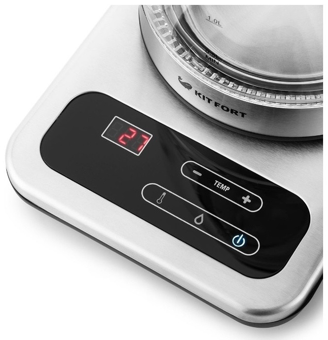 Kitfort Электрочайник КТ-657В данный момент этот товар отсутствует в продаже. Возможно, у нас найдется аналогичный или похожий товар здесь. Электрический чайник Kitfort KT-657 с терморегулятором позволит не только вскипятить воду, но и нагреть ее до температуры от 40 до 100 градусов, что очень удобно для заваривания различных сортов чая. Корпус и крышка чайника выполнены из стекла, а крышка и подставка — из сочетания пластмассы и нержавеющей стали. Благодаря режиму поддержания температуры вы можете наслаждаться вкусным чаем, не дожидаясь закипания или остывания до необходимой температуры. Чтобы очистить чайник от накипи воспользуйтесь функцией самоочистки, в процессе которой чайник будет непрерывно кипеть в течение трех минут. |