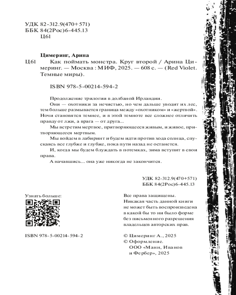 💳 Оплатить за товар можно при получении 🇰🇿 Есть бесплатная доставка по Казахстану от 1 дня 🎁 Копите бонусы с каждой покупки Серия: Red Violet. Темные миры Они — охотники за нечистью, но чем дальше уводит их лес, тем больше размывается граница между «охотником» и «жертвой». Ночи становятся темнее, и в этой темноте все сложнее отличить правду от лжи, а врага — от друга... |