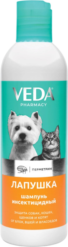 Инсектицидный шампунь Лапушка — лечебное моющее средство. Подходит для использования щенкам и котятам старше 2-месячного возраста.