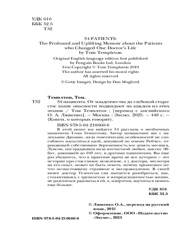 34 пациента. От младенчества до глубокой старости: какие опасности поджидают на каждом из этих этаповВ данный момент этот товар отсутствует в продаже. Возможно, у нас найдется аналогичный или похожий товар здесь. Серия: Книги, о которых говорят «34 пациента» — это попытка рассказать о том, как много личного скрывается за медицинским диагнозом, и о том, как трудно бывает смириться с тем, что ты не можешь спасти всех. Это книга о простых и сложных случаях, о людях разных возрастов и взглядов, о враче и 34-х пациентах, оставивших особый след в его памяти. |