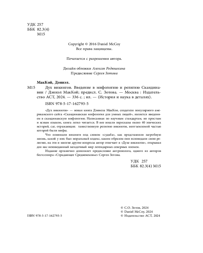 💳 Оплатить за товар можно при получении 🇰🇿 Есть бесплатная доставка по Казахстану от 1 дня 🎁 Копите бонусы с каждой покупки Серия: История и наука в деталях «Дух викингов» — новая книга Дэниела МакКоя, создателя популярного американского сайта «Скандинавская мифология для умных людей», является введением в скандинавскую мифологию. Написанная по научным стандартам, но простым и ясным языком, книга легко читается. В нее вошли пересказы около 40 эпических историй, саг, отражающих таинственную религию викингов, неотъемлемой частью которой были мифы. |