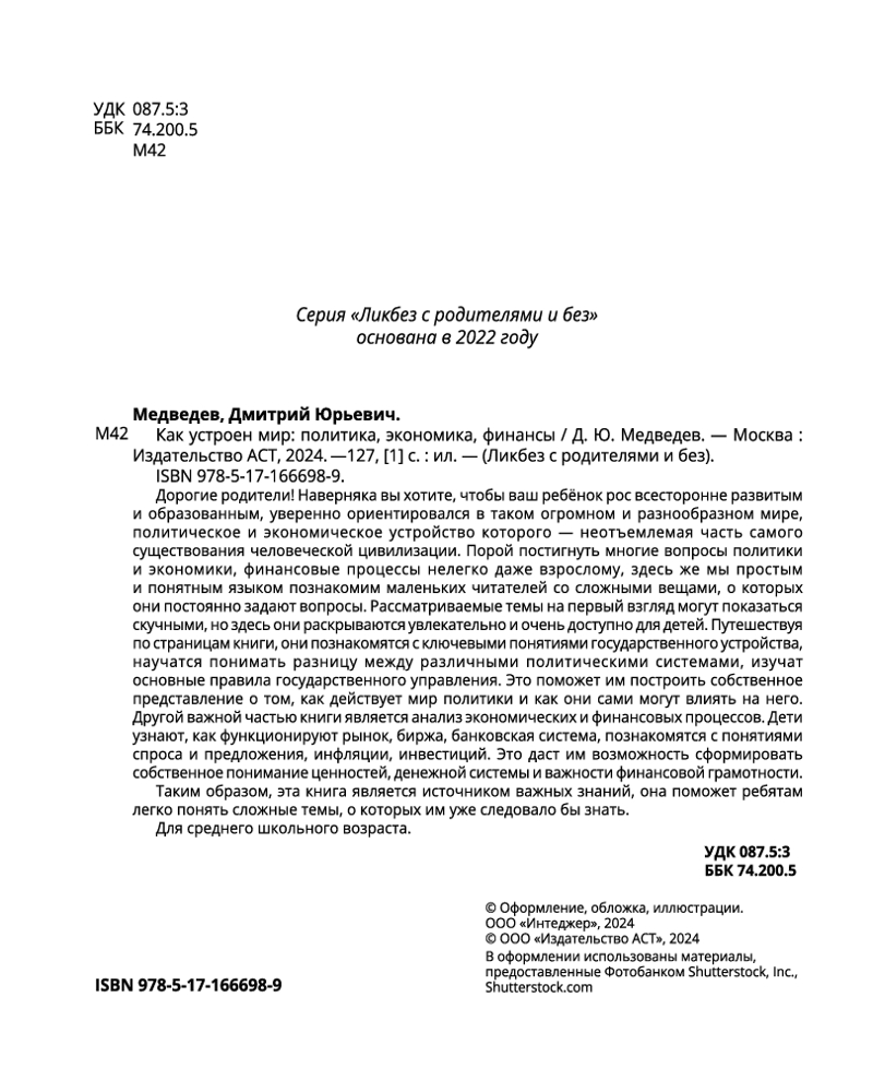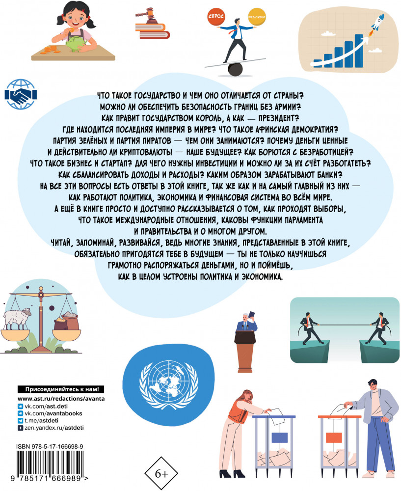 💳 Оплатить за товар можно при получении 🇰🇿 Есть бесплатная доставка по Казахстану от 1 дня 🎁 Копите бонусы с каждой покупки Серия: Ликбез с родителями и без Дорогие родители! Наверняка вы хотите, чтобы ваш ребёнок рос всесторонне развитым и образованным, уверенно ориентировался в таком огромном и разнообразном мире, политическое и экономическое устройство которого — неотъемлемая часть самого существования человеческой цивилизации. Порой постигнуть многие вопросы политики и экономики, финансовые процессы нелегко даже взрослому, здесь же мы простым и понятным языком познакомим маленьких читателей со сложными вещами, о которых они постоянно задают вопросы. Рассматриваемые темы на первый взгляд могут показаться скучными, но здесь они раскрываются увлекательно и очень доступно для детей. |
